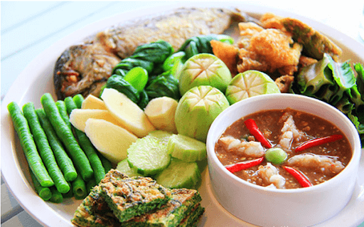 3.ไข่เจียวชะอมน้ำพริกกะปิ
