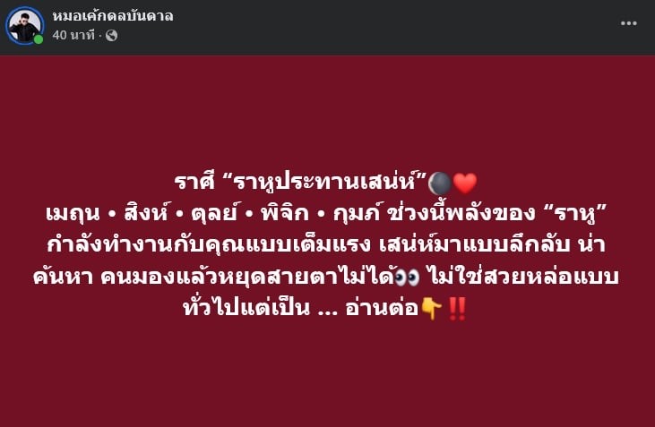 เรียกได้ว่า เป็นช่วงดวงพุ่งแรง สำหรับคำทำนายของ หมอเค้กดลบันดาล ที่ออกมาเผยถึงราศีที่กำลังได้รับพลัง ราหูประทานเสน่ห์ แบบเต็มที่