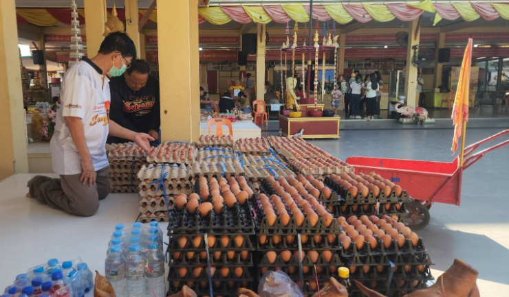 นายชัย และนางน้ำฝน เจริญศรีสุข สองสามีภรรยา บ้านอยู่ จังหวัดสมุทรสงคราม ได้นำไข่ไก่สด 100 แผง 3,000 ฟอง มาทำการแก้บนกับหลวงพ่อสมหวัง โดยเจ้าหน้าที่ช่วยกันนำลงจากรถ แล้ววางที่ลานกว้างขององค์หลวงพ่อสมหวัง เพื่อทำการแก้บน จากนั้นเจ้าหน้าที่ได้ทำการปักธูปลงบนบริเวณแผงไข่ เพื่อเป็นการถวายกับ องค์หลวงพ่อสมหวัง จากนั้น นายชัย และ นางน้ำฝน ได้จุดธูปถวายองค์หลวงพ่อสมหวัง พร้อมบอกกล่าวอธิษฐานในการแก้บนครั้งนี้ให้สำเร็จเสร็จสิ้น และลั่นฆ้องชัย ก่อนจะจุดธูปเลขมงคล ปรากฏ เป็นหมายเลข 2 7 1 โดยนายชัย จะนำมาเป็นเลขเด็ดเลขมงคล เพื่อเสี่ยงโชค