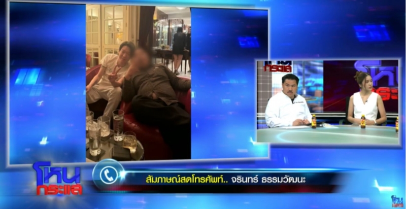 ทางดีเจเพชรจ้า : มีภาพคู่กับ ดีเจเพชรจ้า โดยในรายการ หนุ่ม กรรชัย ได้โฟนอินหา ดีเจเพชรจ้า เผยว่า ไม่รู้จัก เวลาอยู่ร้านอาหารใครขอถ่ายก็ให้ถ่าย ถ่ายทุกคน ไม่รู้จักกันเลย ตอนเช้า เเทค ภรัณญู โทรมาถามว่าไปถ่ายรูปกับใคร เราก็งง เปิดโหนกระเเสดู พอเปิดมาใครว่ะเนี่ย ผมงงเลย จำได้ว่าเป็นร้านที่อยู่ในเอ็มสเฟียร์ (EMSPHERE) เขาบอกผมว่าเป็นเจ้าของวิสกี้เเบรนด์นึง นำเขามาเเบรนด์ดัง นำเข้ามา ขึ้นต้นด้วยตัว M ยืนยันไม่รู้จัก เขาถามว่ารับสักขวดมั้ย ผมบอกว่าทานอันนี้ไม่เป็นเลยไม่ได้อุดหนุนเขา เขาบอกว่า เขาจัดงานในวันนี้ขึ้นมา เเต่ผมไปก็มีงานปกติ ก็เลยชนเเก้วกับเขา