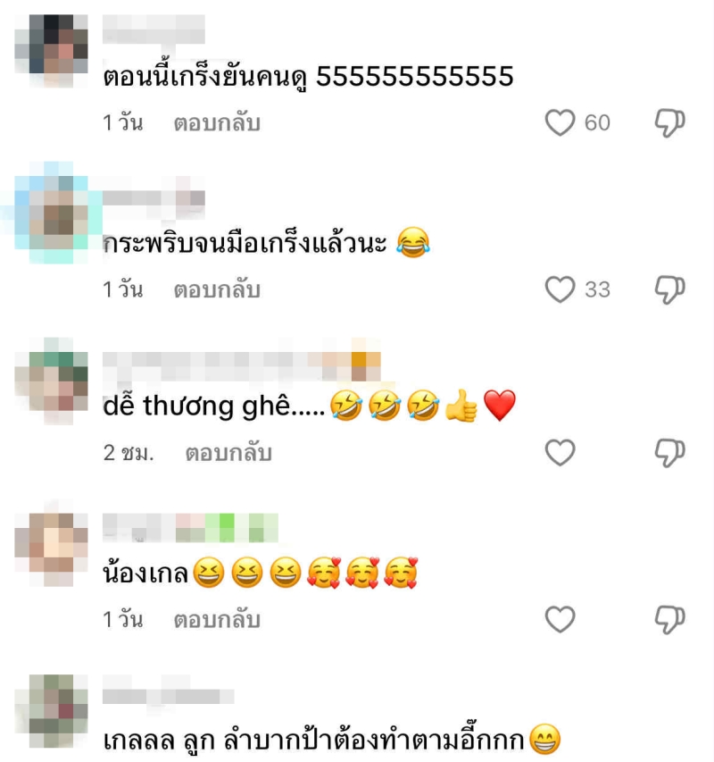 งานนี้ ทำคอมเมนต์พุ่งรัวๆ เช่น ตอนนี้เกร็งยันคนดู 555555555555 , กระพริบจนมือเกร็งแล้วนะ , น้องเกล , เกลลล ลูก ลำบากป้าต้องทำตามอี๊กกก เป็นต้น