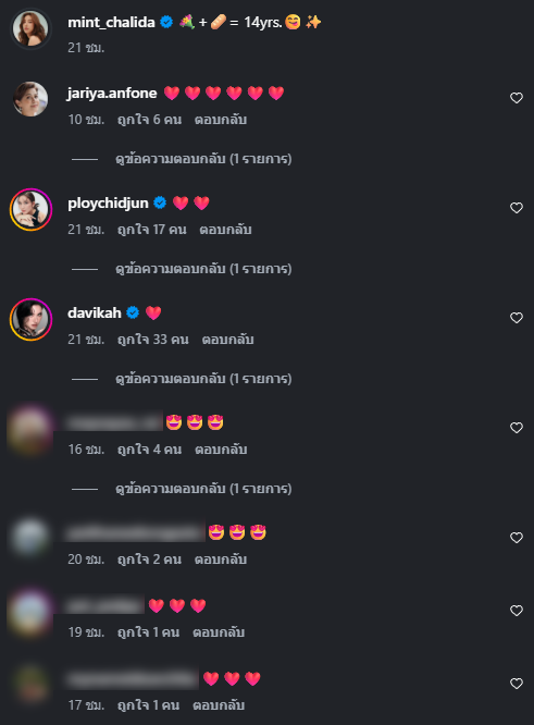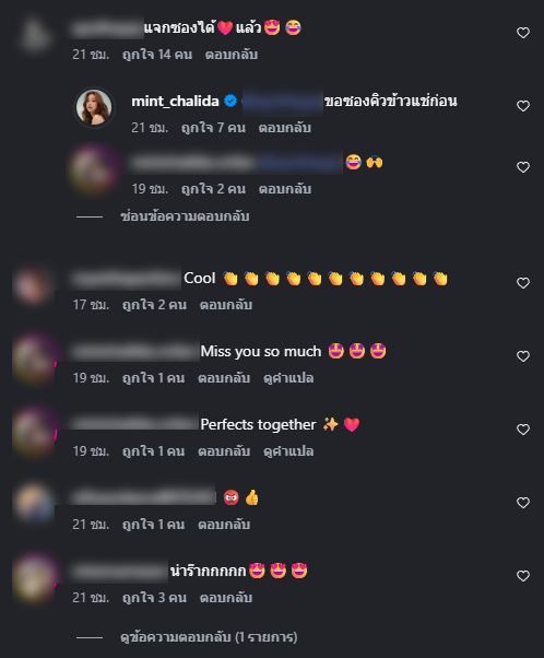 ท่ามกลางแฟนๆและคนในวงการเข้ามาคอมมเนต์เพียบ ซึ่งก็มีคนบอกว่าให้แจกซองได้แล้ว ด้านสาวมิ้นต์จึงตอบกลับว่า ขอซองคิวข้าวแช่ก่อน