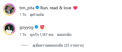 พร้อมระบุแคปชั่นสั้นๆ แต่ลึกซึ้งว่า Run, read & love งานนี้ทำเอาแฟนสาวอย่าง ก้อย อรัชพร เข้ามาคอมเมนต์ทันทีด้วยอีโมจิรูปใบหน้ายิ้ม