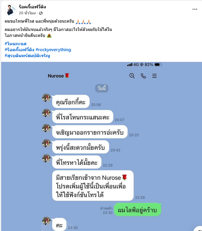 ทำเอาแฟนๆต่างเข้ามาคอมเมนต์ชื่นชมกันอย่างมากสำหรับ ร็อคกี้ สุรบดินทร์ ที่ล่าสุดได้ออกมาโพสต์ขอโทษ หนุ่ม กรรชัย หลังถูกเชิญไปรายการโหนกระเเส ท่ามกลางข่าวมรสุมชีวิตของครอบครัว