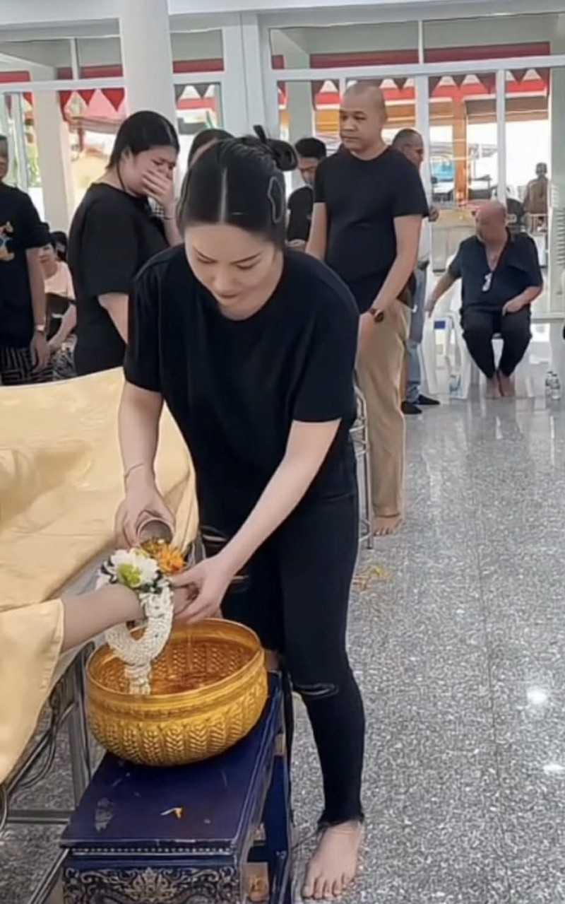 ภายในงานเต็มไปด้วยความเงียบงัน หลายคนกลั้นน้ำตาไม่อยู่ ขณะที่คนใกล้ชิดต่างเข้ามารดน้ำ