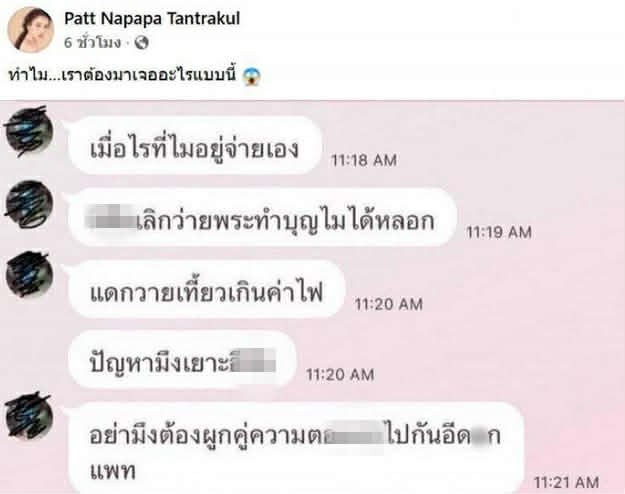 ซึ่ง เจ้าตัว อธิบายว่า แชตที่ถูกพูดถึงเป็นเรื่องของค่าใช้จ่ายภายในบ้านของอีกฝ่าย ซึ่งเป็นคนละบ้านกับ เธอ โดยสิ้นเชิง แต่กลับมีการพาดพิงมาถึงชื่อของเธอ