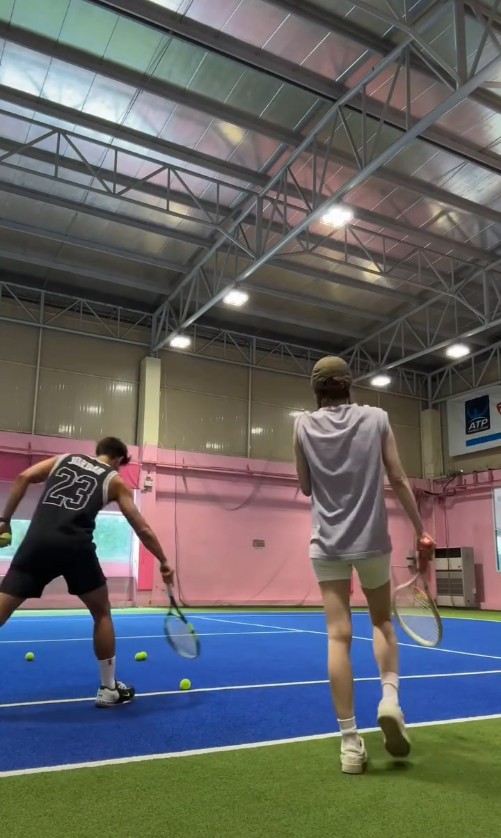 งานี้แฟนๆต่างหลุดโฟกัสที่น้องโนล่าที่โชว์ทักษะการจับไม้เทนนิสอันจิ๋วตั้งใจตีลูกอย่างขะมักเขม้น ท่ามกลางแฟนๆ ต่างแห่เข้ามาคอมเมนต์แสดงความยินดีและแอบเชียร์ให้คู่นี้กลับมามีโมเมนต์หวานอีกครั้ง