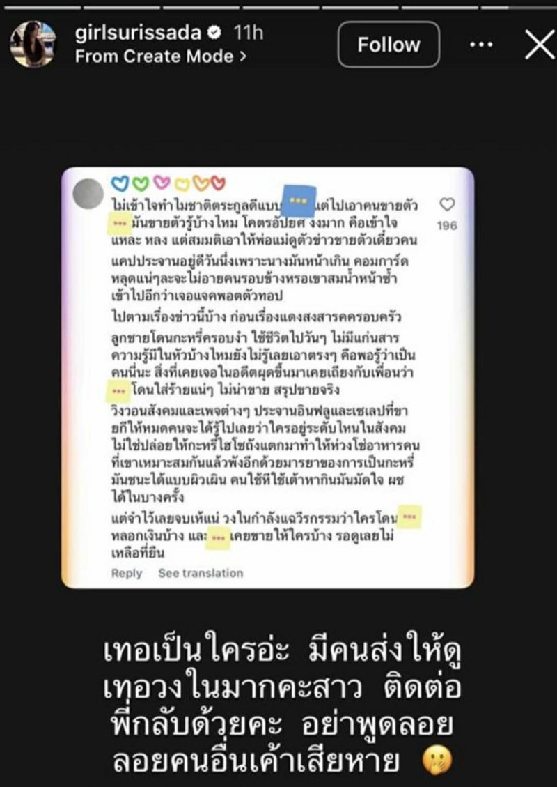 อีกทั้ง พี่สาว ยังส่งสัญญาณถึงผู้ที่มีข้อมูลเพิ่มเติม ให้แสดงตัวตนอย่างชัดเจน ไม่ใช่เพียงการปล่อยข่าวลือที่อาจสร้างความเสียหาย