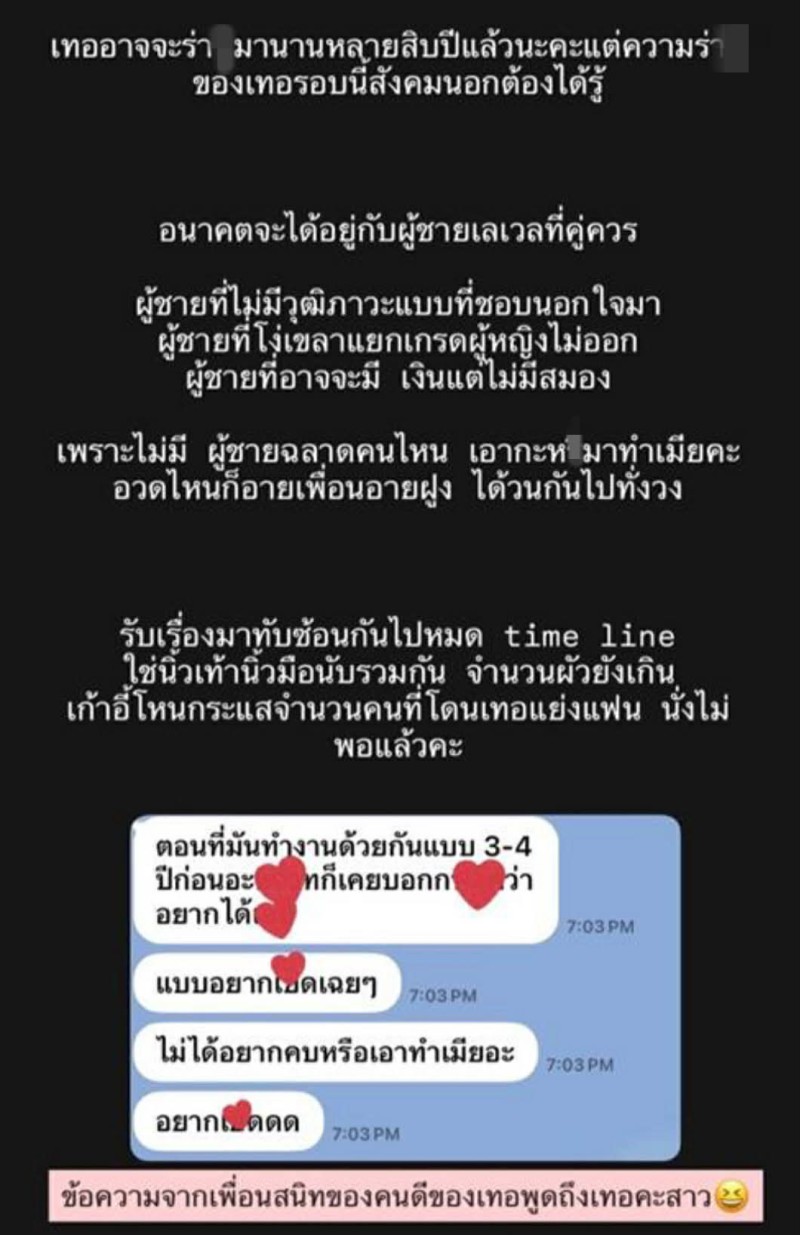 สถานการณ์ยิ่งเดือดขึ้น เมื่อพี่สาว ออกมาโพสต์ข้อความผ่านโซเชียลแบบดุเดือด พุ่งเป้าไปที่บุคคล ที่ถูกมองว่า เป็นมือที่สาม พร้อมวิจารณ์พฤติกรรมอย่างเผ็ดร้อน