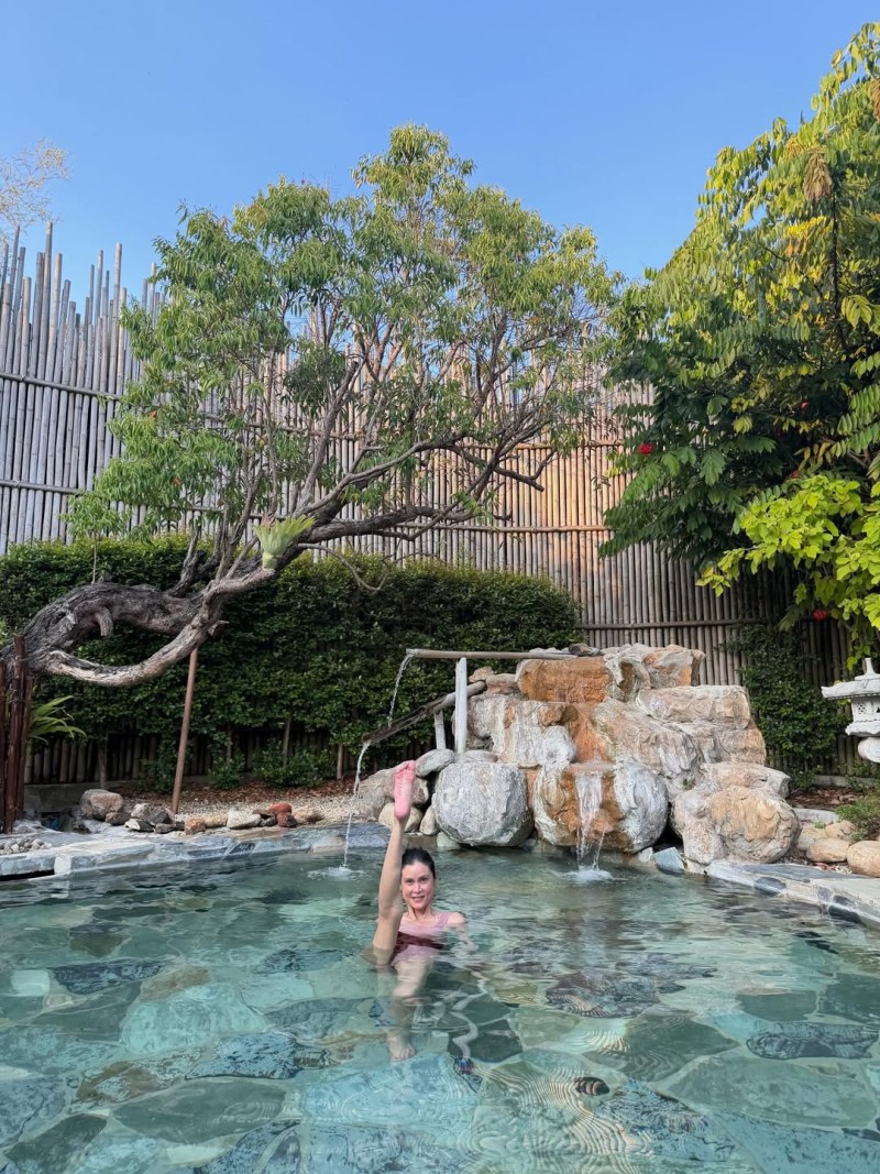 ล่าสุดทำเอาโซเชียลต้องลุกเป็นไฟอีกครั้งเมื่อเจ้าตัวได้โพสต์ภาพการลงแช่ออนเซ็นส่วนตัวท่ามกลางวิวธรรมชาติโดยเช็กอินที่ม่อนแจ่ม จังหวัดเชียงใหม่ แต่ที่น่าฮือฮากว่านั้นคือแม่ปิ่นโชว์สกิลความสตรองด้วยการเล่นโยคะในน้ำ