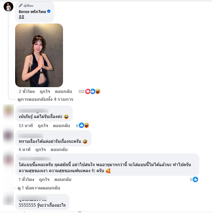 ล่าสุด เบนซ์ พริกไทย เคลื่อนไหวแล้ว โดยโพสต์ภาพสวยๆของตัวเอง พร้อมแคปชั่นบอกว่า ขอบคุณค่ะ เบนซ์ทราบเรื่องแล้วค่ะ