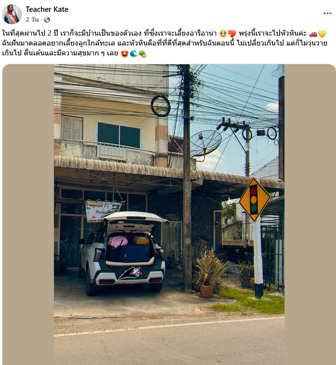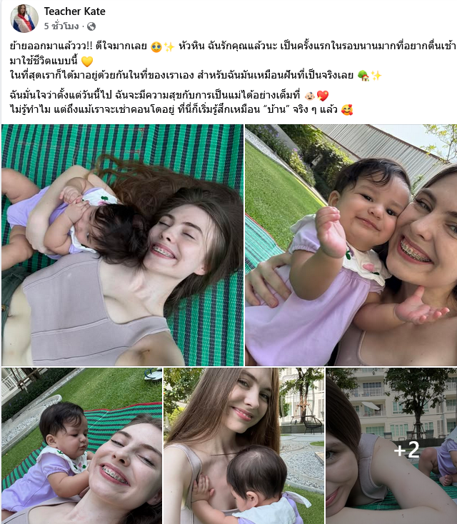 ต่อมาทางด้านภรรยาได้ออกมาโพสต์ข้อความ ในที่สุดผ่านไป 2 ปี เราก็จะมีบ้านเป็นของตัวเอง ที่ซึ่งเราจะเลี้ยงอารีอาน่า พรุ่งนี้เราจะไปหัวหินค่ะ ฉันฝันมาตลอดอยากเลี้ยงลูกใกล้ทะเล และหัวหินคือที่ที่ดีที่สุดสำหรับฉันตอนนี้ ไม่เปลี่ยวเกินไป แต่ก็ไม่วุ่นวายเกินไป ตื่นเต้นและมีความสุขมากๆ เลย