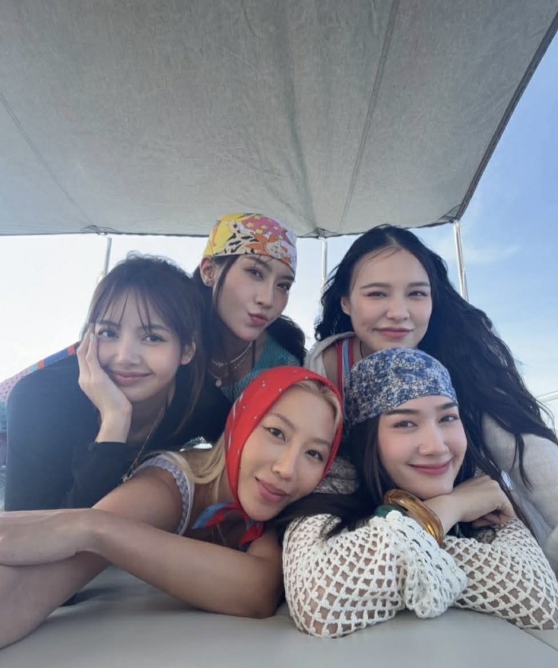 ทริปนี้ ทั้งคู่ ยกแก๊งเพื่อนไปล่องเรือกลางทะเล บรรยากาศเต็มไปด้วยความชิล และวิวสวยสะดุดตา เพิ่มดีกรีความปังด้วยลุคสบายๆ แต่แอบแซ่บเบาๆ