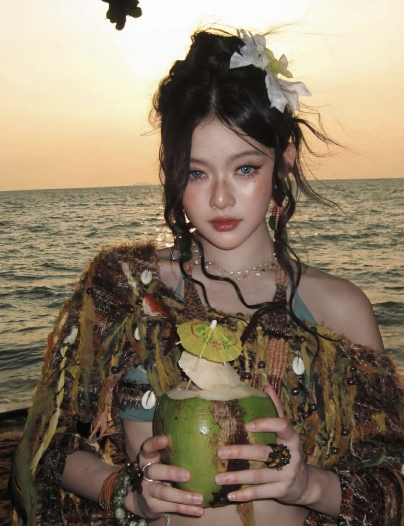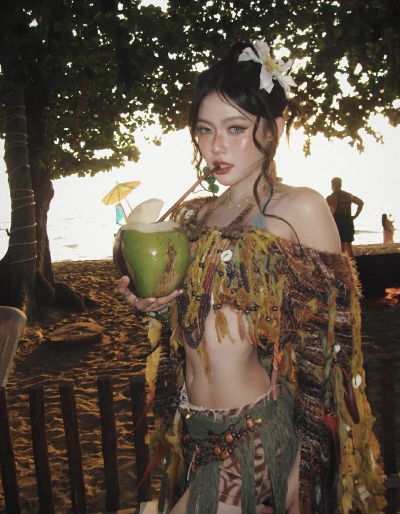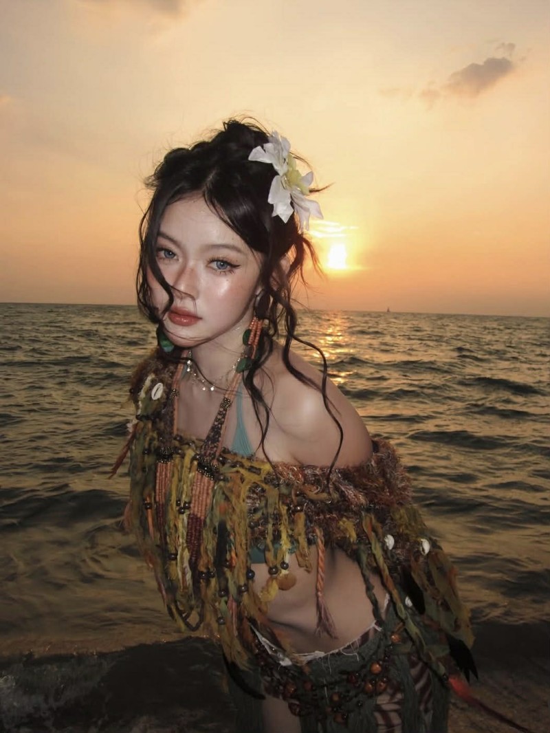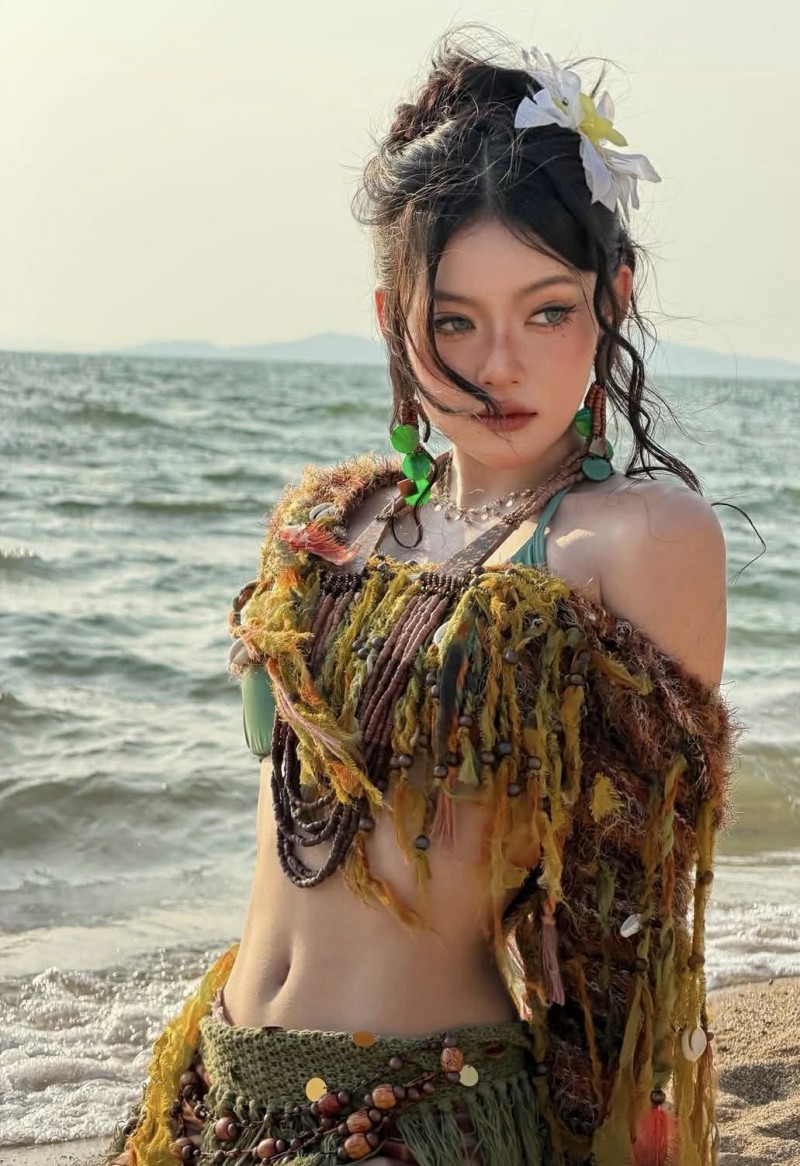 ภาพถ่ายครั้งนี้ โดดเด่นด้วยลุคแฟชั่นแนวบีชที่ผสมความเก๋แบบจัดเต็ม โทนสีเอิร์ธดูสบายตา เสริมด้วยดีเทลเครื่องประดับ และลูกปัดที่ช่วยเพิ่มความมีสไตล์ให้ดูแตกต่าง