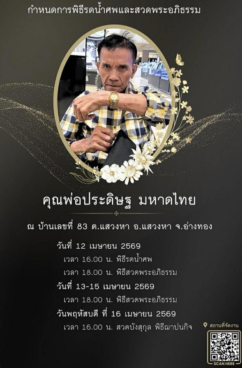โดยก่อนหน้านี้ คุณพ่อประดิษฐ ประสบอุบัติเหตุขณะขี่จักรยานยนต์ออกไปซื้อของ เมื่อวันที่ 28 มกราคม 2569 และเข้ารักษาในโรงพยาบาลมาโดยตลอด กระทั่งจากไปอย่างสงบ ท่ามกลางความอาลัยของคนใกล้ชิด