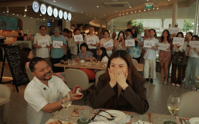 ซึ่งโมเมนต์สำคัญเกิดขึ้นในช่วงการรวมตัวของครอบครัว ที่ทุกคนอยู่พร้อมหน้า ก่อนที่ฝ่ายชาย จะหยิบแหวนขึ้นมาขอแฟนสาวแต่งงาน สร้างความตื้นตันใจให้กับคนในงานเป็นอย่างมาก