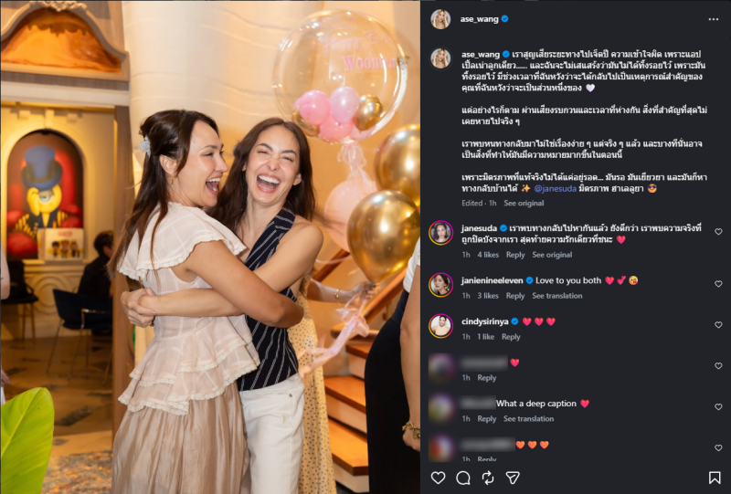 เรียกได้ว่า กลับมาพบกันอีกครั้ง สำหรับเพื่อน อย่าง โอซา แวง และ เจน สุดา ซึ่งล่าสุด ทางโอซา แวง ได้ออกมาโพสต์ผ่านทางอินสตาแกรมส่วนตัวุคงความในใจว่า เราสูญเสียระยะทางไปเจ็ดปี ความเข้าใจผิด เพราะแอปเปิ้ลเน่าลูกเดียว...... และฉันจะไม่เสแสร้งว่ามันไม่ได้ทิ้งรอยไว้ เพราะมันทิ้งรอยไว้ มีช่วงเวลาที่ฉันหวังว่าจะได้กลับไปเป็นเหตุการณ์สําคัญของคุณที่ฉันหวังว่าจะเป็นส่วนหนึ่งของ