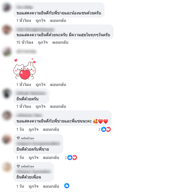 ท่ามกลางเพื่อนๆและชาวเน็ตต่างเข้ามาแสดงความยินดีด้วยจำนวนมาก
