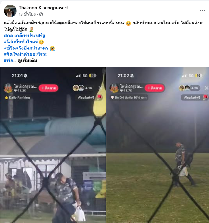 พร้อมเขียนแคปชั่นว่า แล้วคือแล้วลูกศิษย์ลูกหาก็นั่งดูแกถือของไปคนเดียวแบบนี้อ่ะหรอ กลับบ้านเราก่อนไหมครับ ไม่มีคนส่งมาให้ดูก็ไม่รู้อีก สกล เกลี้ยงประเสริฐ #โอ้ยบีบหัวใจแท้ #ชีวิตจริงยิ่งกว่าละคร #จิตใจทำด้วยอะไรวะ #พ่อxูต้องมาเจออะไรวะเนี้ย