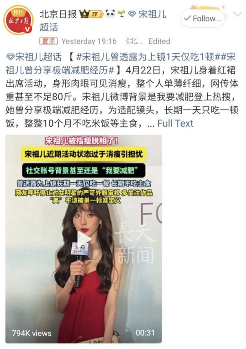 ขณะเดียวกัน ยังมีการย้อนข้อมูลเก่าที่ เธอ เคยเปิดใจเกี่ยวกับการลดน้ำหนักอย่างเข้มงวด เพื่อการทำงานในวงการบันเทิง โดยเคยควบคุมอาหารหนัก กินเพียงวันละมื้อ และงดอาหารหลักต่อเนื่องยาวนานหลายเดือน