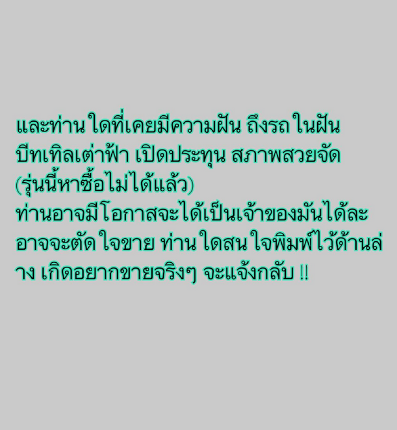 ถัดมาได้โพสต์ข้อความเพื่อขายรถว่า และท่านใดที่เคยมีความฝัน ถึงรถในฝัน บีทเทิลเต่าฟ้า เปิดประทุน สภาพสวยจัด (รุ่นนี้หาซื้อไม่ได้แล้ว) ท่านอาจมีโอกาสจะได้เป็นเจ้าของมันได้ละ อาจจะตัดใจขาย ท่านใดสนใจพิมพ์ไว้ด้านล่าง เกิดอยากขายจริงๆ จะแจ้งกลับ ทั้งนี้ยังเขียนเเคปชั่นอีกว่า ด้วยความเคารพจึงเรียนมาเพื่อทราบค่ะ ท่ามกลางเพื่อนในวงการต่างเข้ามาคอมเมนต์กันอย่างมาก