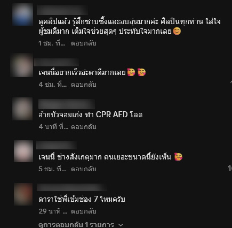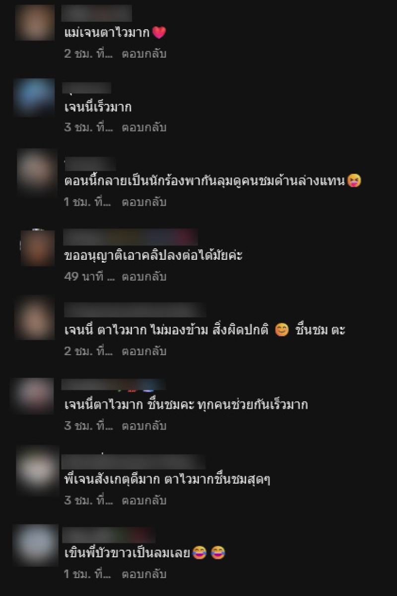 งานนี้ทำเอาชาวเน็ตหลายคนต่างคอมเมนต์ชื่นชม เจนนี่ กันอย่างมาก อาทิ เจนนี่อยากเร็วอ่ะตาดีมากเลย,เจนนี่ ช่างสังเกตุมาก คนเยอะขนาดนี้ยังเห็น,แม่เจนตาไวมาก,เจนนี่เร็วมาก,ดูคลิปแล้ว รู้สึกซาบซึ้งและอบอุ่นมากค่ะ ศิลปินทุกท่าน ใส่ใจผู้ชมดีมาก เต็มใจช่วยสุดๆ ประทับใจมากเลย,พี่เจนสังเกตุดีมาก ตาไวมากชื่นชมสุดๆ เป็นต้น
