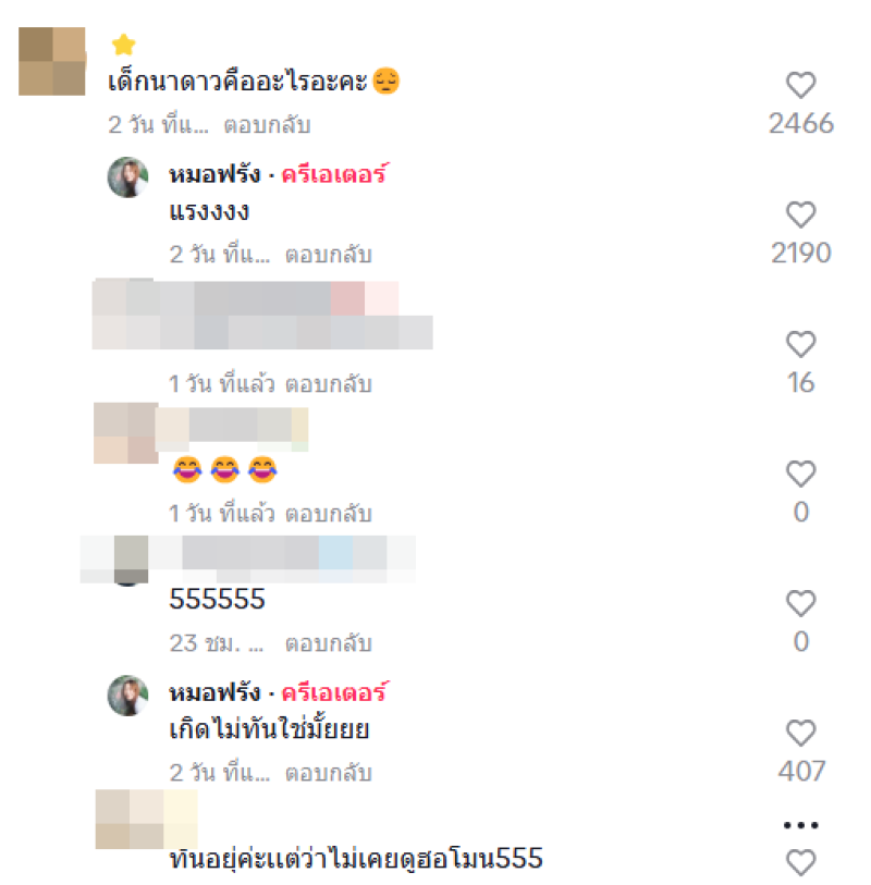 ซึ่งคอนเทนต์ ดังกล่าว ได้พูดถึงเมื่อครั้งที่ตนเคยเป็นนักแสดง ในสังกัดนาดาว พร้อมเผยว่า แต่ละคนมีจุดเด่นในเรื่องไหน ซึ่งตอนนี้คลิปดังกล่าว ได้มีคนดูถึง 2 ล้านวิวแล้ว ซึ่งก็มีเหล่าแฟนๆคอซีรีส์ ดังกล่าว เข้ามาคอมเมนต์กันสนั่น อาทิ คิดถึง เด็กนาดาวทุกคน ขึ้นชื่อว่าเด็กนาดาว แน่นอนว่ามีความสามารถทุกคน ขณะที่มีคอมเมนต์รายหนึ่งที่ไม่รู้จักเข้ามาถามว่า เด็กนาดาวคืออะไรคะ ทำเอาหมอฟรังที่เห็นเมนต์ดังกล่าว เอ็นดูไม่ไหว พร้อมตอบกลับทันทีว่า แรง เกิดไม่ทันใช่ไหม คอมเมนต์จากรายดังกล่าว รีบตอบกลับอีกทีว่า ทันอยู่ค่ะ แต่ว่าไม่เคยดูฮอร์โมน 555