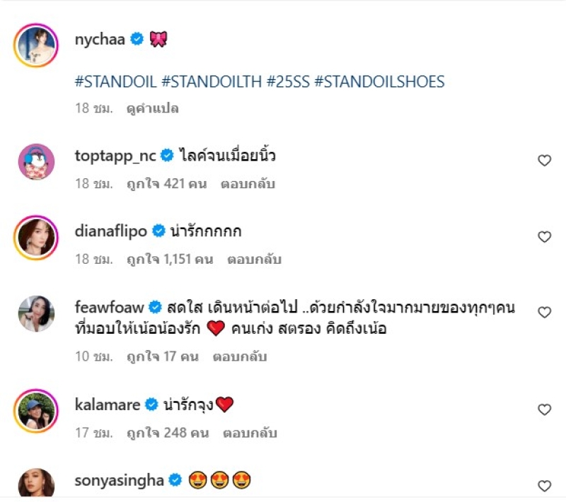 ก่อนที่อีกเมนต์จะเข้ามาเฉลยว่า เป็นแขนของ ช่างแต่งหน้าของณิชา ท่ามกลางคนในวงการบันเทิงเข้ามาคอมมเนต์กันอีกเพียบ
