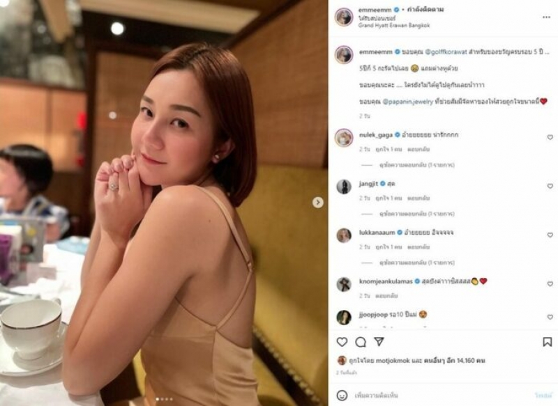 เอ็ม โชว์แหวนเพชร สามีอัพเกรดกะรัตเพิ่มตามปีครบรอบ