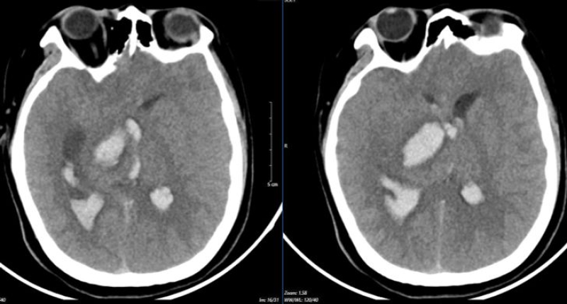 รายงานจากสื่อต่างประเทศ เด็กชายวัย 15 ปี ถูกส่งตัวเข้าห้องฉุกเฉินด้วยอาการปวดศีรษะรุนแรง จากนั้นไม่นานก็ตกอยู่ในอาการโคม่า โรงพยาบาลชั้นต้นวินิจฉัยว่า ผู้ป่วยมีภาวะเลือดออกในสมอง จึงทำการใส่ท่อช่วยหายใจ ติดเครื่องช่วยหายใจ และส่งตัวไปรักษาต่อ โดยตรวจพบว่า รูม่านตาข้างขวาขยายใหญ่ ผลการสแกนแสดงให้เห็นว่ามีเลือดออกในสมองเนื่องจากหลอดเลือดสมองโป่งพองและแตก