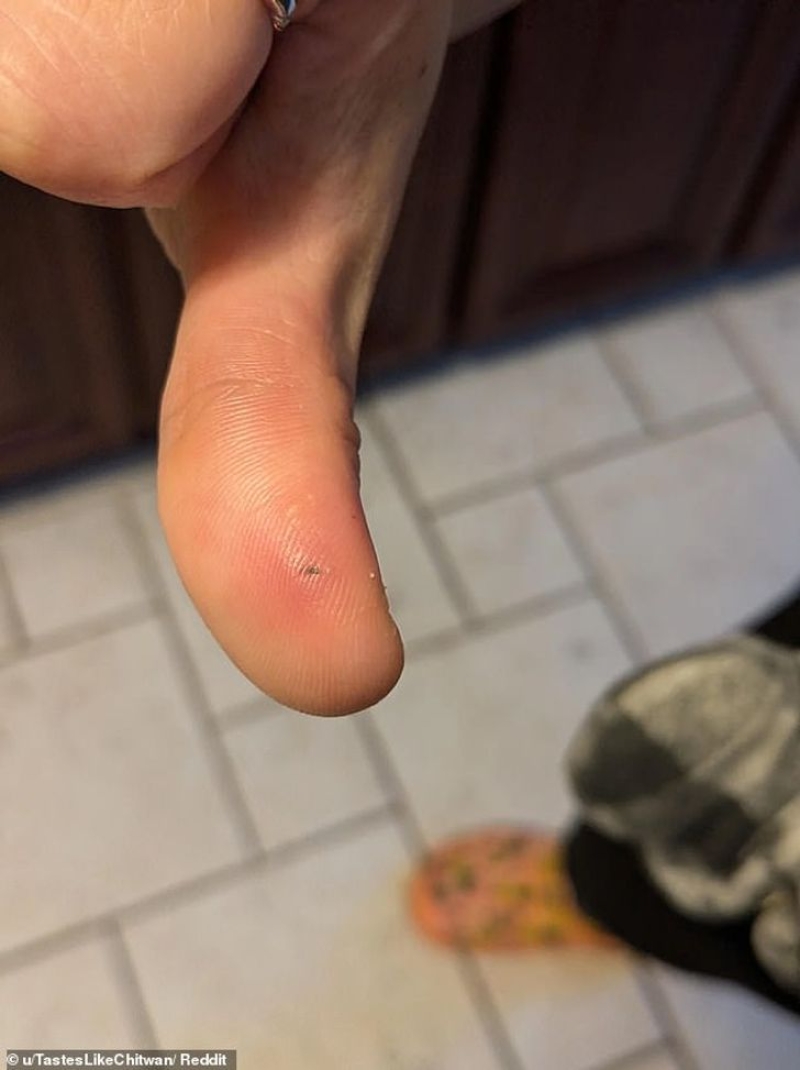 ของหัวหอมปักเข้าที่นิ้วโป้งของเขา ตอนแรกเขาคิดว่าเศษหอมจะหลุดออกเอง จึงไม่ได้ใส่ใจมากนัก วันต่อมาแขนของเขาบวมขึ้นอย่างรวดเร็ว และมีเส้นเลือดแดงขึ้นทั่วบริเวณ ทำให้เขาเริ่มกังวลและรีบติดต่อบริการแพทย์ฉุกเฉิน โดยแพทย์วินิจฉัยว่า