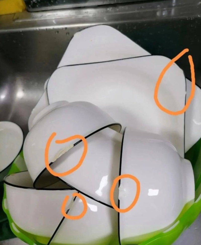 3.ชามหรือจานที่แตกหรือร้าว ถ้าชามหรือจานแตก ควรทิ้งไปทันที เพราะมันไม่เพียงแค่ใช้งานไม่ได้เหมือนเดิมเท่านั้น แต่ยังเสี่ยงทำให้เกิดอันตรายหรือบาดเจ็บได้ อีกทั้งถ้าไม่ทำความสะอาดให้ดีและเช็ดให้แห้ง ก็อาจกลายเป็นแหล่งสะสมเชื้อโรคและรา นอกจากนี้ จานหรือชามที่มีสารเคลือบอาจปล่อยสารเคมีออกมา โดยเฉพาะเมื่อใช้ใส่อาหารที่ร้อนหรือมีความเป็นกรด