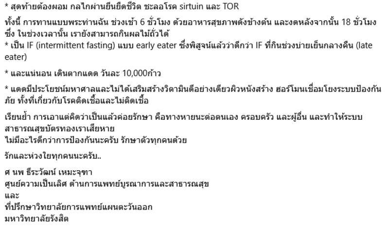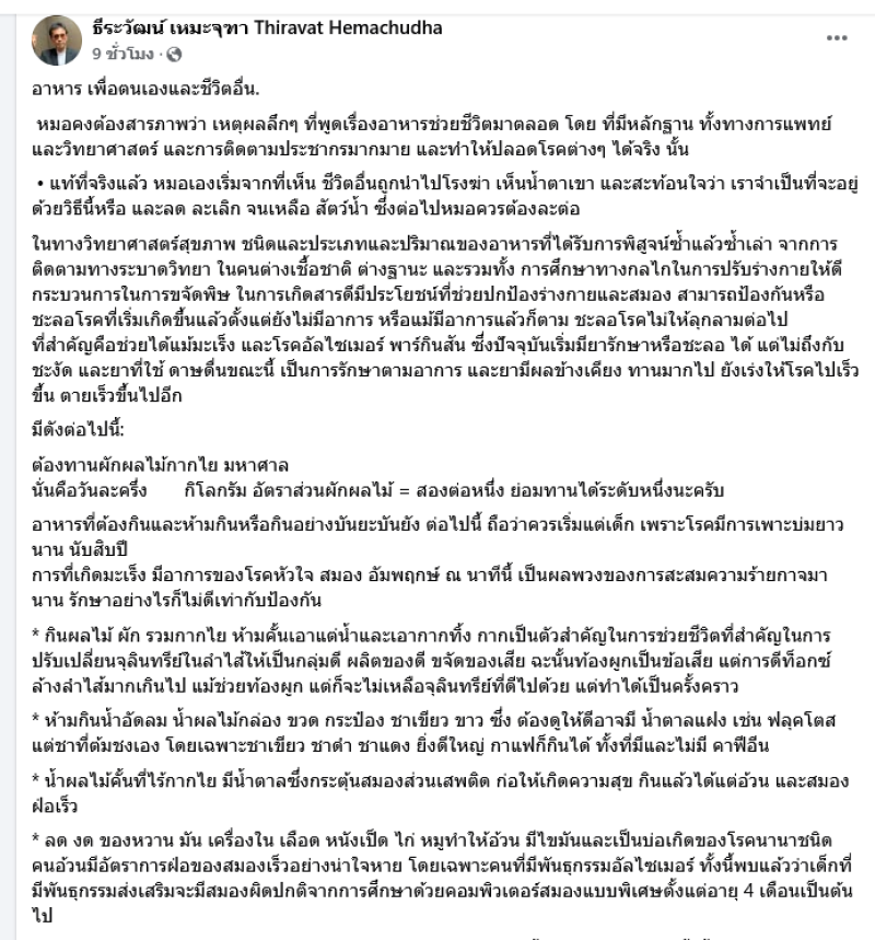 เรียกได้ว่าเป็นประธานศูนย์ความเป็นเลิศ ด้านการแพทย์บูรณาการและสาธารณสุขสำหรับ ศ.นพ.ธีระวัฒน์ เหมะจุฑา ที่ล่าสุดได้ออกมาโพสต์แนะนำอาหารที่ดีผ่านทางเฟซบุ๊ค ธีระวัฒน์ เหมะจุฑา Thiravat Hemachudha ระบุว่า
