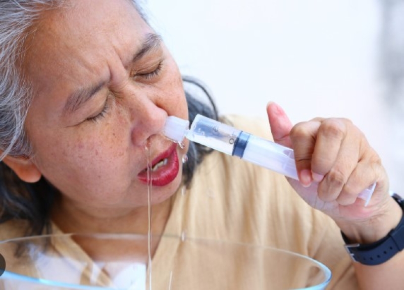 การล้างจมูกมักใช้บรรเทาอาการหวัด ไซนัสอักเสบ หรือภูมิแพ้ โดยใช้อุปกรณ์ล้างจมูก องค์การอาหารและยาแห่งสหรัฐฯ (FDA) เตือนว่า ควรใช้น้ำกลั่น น้ำปลอดเชื้อ หรือ น้ำที่ต้มแล้วเท่านั้นในการล้างจมูก ควรปฏิบัติตามคำแนะนำของอุปกรณ์อย่างเคร่งครัด และไม่ควรใช้ในเด็กเล็ก ขณะที่ CDC แนะนำว่า หากคุณหรือคนใกล้ตัวมีอาการปวดศีรษะ ไข้ สับสน หรืออาเจียน หลังจากล้างโพรงจมูก ควรรีบไปพบแพทย์ทันที