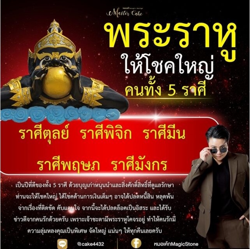 เมื่อวันที่ 21 ม.ค. 68 ที่ผ่านมา หมอเค้กMagicdesign เปิดชะตา 5 ราศี พระราหู ให้โชคใหญ่ เป็นปีที่ดีของทั้ง 5 ราศี บุญเก่าหนุนนำ ได้โชคด้านการเงินเต็ม ๆ อาจได้ปลดหนี้ ประกอบด้วย ราศีตุลย์ ราศีพิจิก ราศีมีน ราศีพฤษภ และ ราศีมังกร