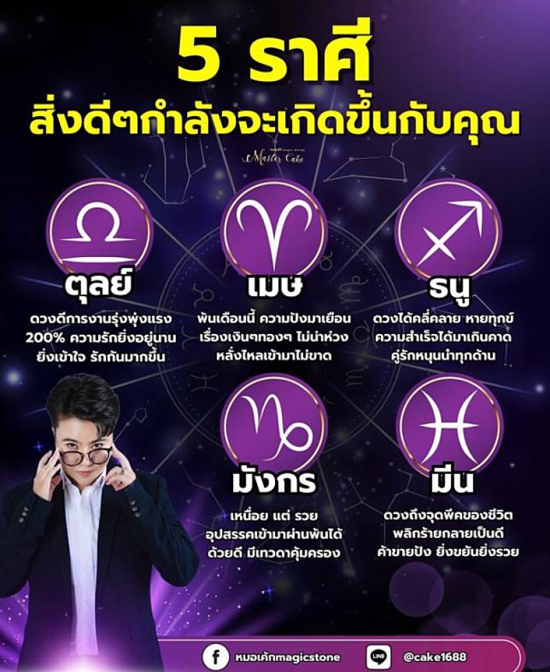หมอเค้ก Magic stone หมอดูชื่อดัง เปิด 5 ราศีสิ่งดี ๆ กำลังจะเกิดขึ้นกับคุณ การงานรุ่งพุ่งแรง 200% ดวงถึงจุดพีคของชีวิต พลิกร้ายกลายเป็นดี ยิ่งขยันยิ่งรวย