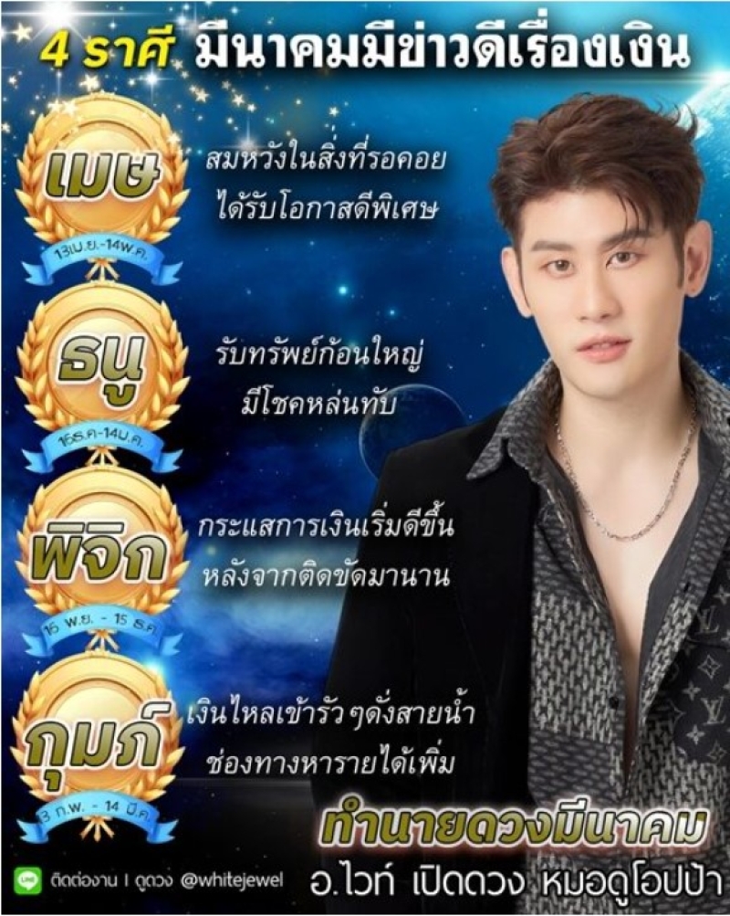วันที่ 1 มี.ค. 68 ที่ผ่านมา อาจารย์ไวท์เปิดดวง หมอดูโอปป้า เผยในเพจ White Jewel (อาจารย์ไวท์เปิดดวง หมอดูโอปป้า) เปิดดวงชะตา 4 ราศี เดือนมีนาคมมีข่าวดีเรื่องเงิน เผย ราศีใดสมหวังในสิ่งที่รอคอย ราศีใดรับทรัพย์ก้อนใหญ่ เงินไหลเข้ารัว ๆ โดยมีรายละเอียดของแต่ละราศี ดังนี้