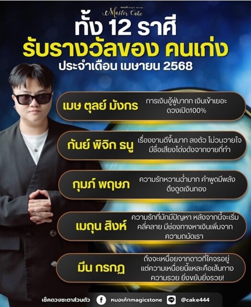 วันนี้ 1 เมษายน 68 ทางหมอเค้กMagic stone เผยเปิดดวงชะตา 12 ราศี รับรางวัลของคนเก่ง ประจำเดือนเมษายน 2568 เผย ราศีใด การเงินอู้ฟู่มาก เงินเข้าเยอะ ดวงเปิด 100% โดยมีรายละเอียดดังนี้