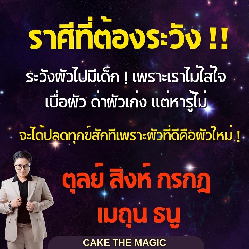 จากกรณี เพจ Cake The magic ของ "หมอเค้ก" ชี้ 5 ราศีต้องระวังผัวไปมีเด็ก เพราะเราไม่ใส่ใจ เบื่อผัว ด่าผัวเก่ง แต่หารู้ไม่ จะได้ปลดทุกข์สักทีเพราะผัวที่ดีคือผัวใหม่