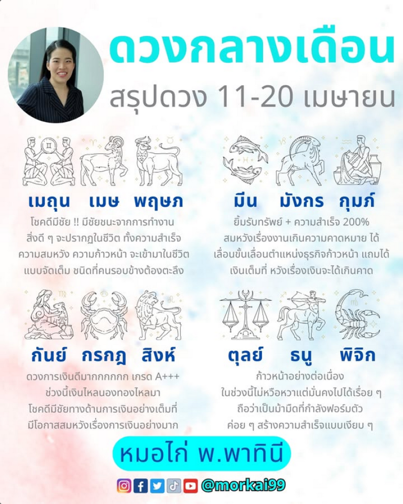 นักพยากรณ์ชื่อดังอย่าง หมอไก่ พ.พาทินี ได้ออกมาทำนายดวง 11-20 เมษายน 2568 มี 3 ราศี ดวงการเงินดีมาก เกรด A+++ ช่วงนี้เงินไหลนอง ทองไหลมา โชคดีมีชัยทางด้านการเงินอย่างเต็มที่ โดยหมอไก่ เผยทางอินสตาแกรม morkai99 ดวง 11-20 เมษายน 2568 มีดังนี้