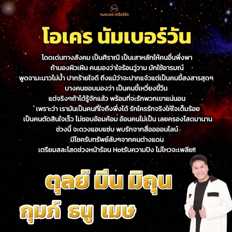 วันที่ 25 เมษายน 68 ที่ผ่านมา หมอบอย หมอดูชื่อดังเปิดดวง 6 ราศี โอเคร นัมเบอร์วัน โดดเด่นทางสังคม เป็นศิราณี เป็นเสาหลักให้คนอื่นพึ่งพา ถ้ามองผิวเผิน คนมองว่าใจร้อนวู่วาม มักใช้อารมณ์ พูดจามะนาวไม่น้ํา ปากร้ายใจดี ถึงแม้ว่าจะปากแจ๋วแต่เป็นคนขี้สงสารสุดๆ บางคนชอบมองว่า เป็นคนขี้เหวี่ยงขี้วีน แต่จริงๆถ้าได้รู้จักแล้ว พร้อมที่จะรักพวกเขาแน่นอน