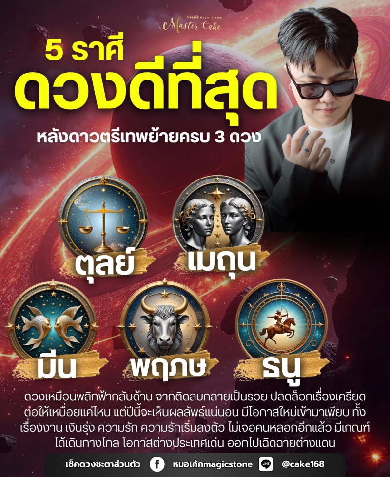 วันที่ 20 พ.ค. 68 ทางหมอเค้กMagicdesign ได้เผยหลังดาวตรีเทพย้ายครบ 3 ดวง ทั้ง 5 ราศี ยกให้เป็น Top5 ที่ดวงดีที่สุด