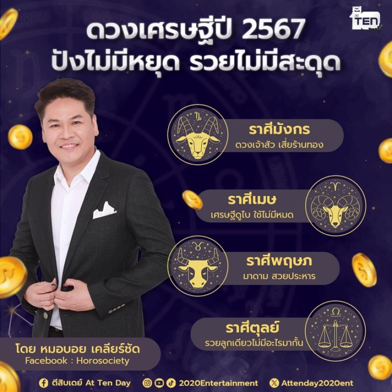เมื่อวันที่ 15 มี.ค. 67 ที่ผ่านมา หมอบอย เคลียร์ชัด นักดูดวงและราศี เปิดดวงดวงชะตาคนเกิด 4 ราศี ดวงเศรษฐีปี 2567 ใช่คุณหรือไม่ รับรองว่าจะรวยไม่มีหยุด