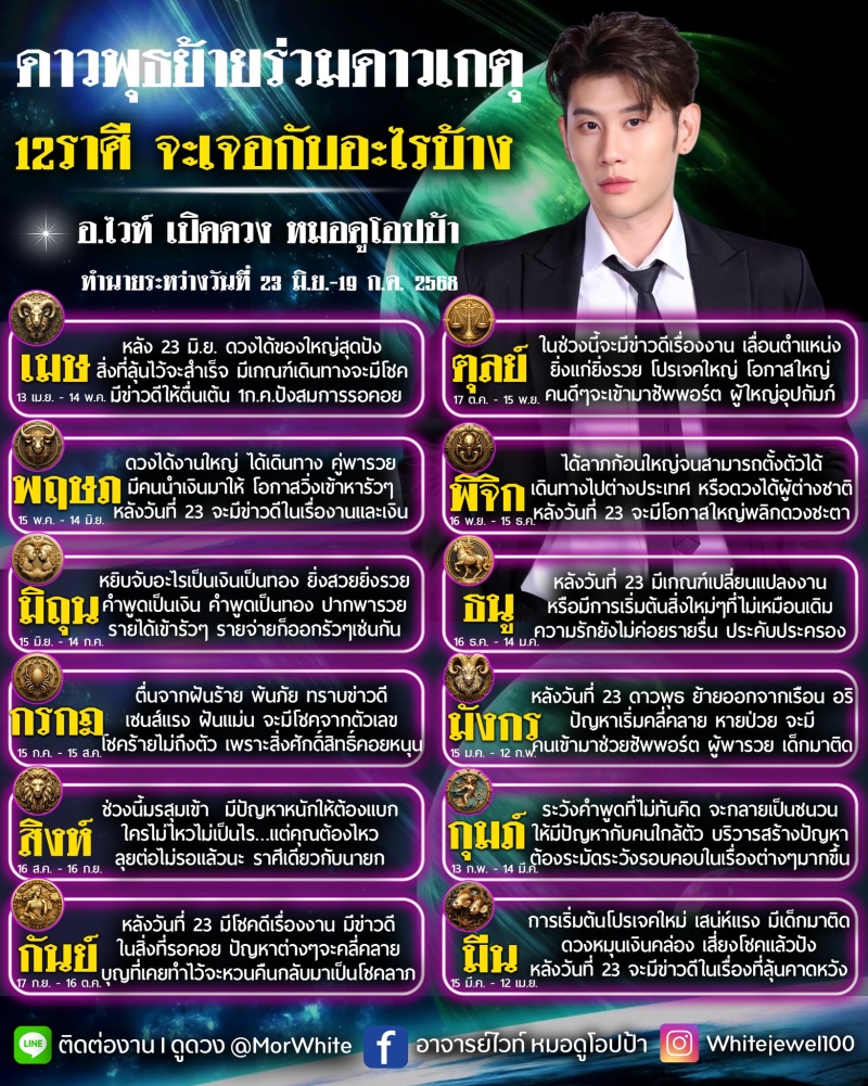นักพยากรณ์ดัง หมอไวท์ ได้ออกทำนายดวงผ่านเพจเฟซบุ๊ก อาจารย์ไวท์ หมอดูโอปป้า ระบุว่า ดาวพฤหัสย้ายร่วมดาวเกตุ 12 ราศี จะเจอกับอะไรบ้าง