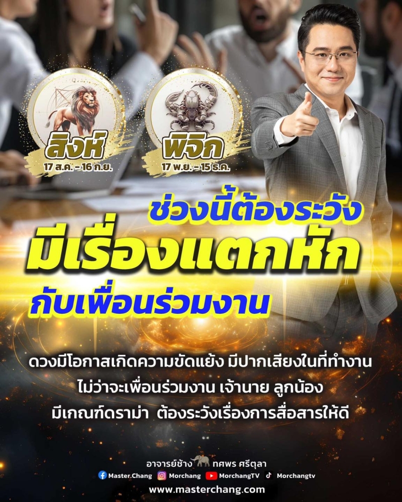 โดย 2 ราศีนี้ ช่วงนี้ต้องระวัง มีเรื่องกับแตกหักกับเพื่อนร่วมงาน ดวงมีโอกาสเกิดความขัดแย้ง มีปากเสียงในที่ทำงาน ไม่ว่าจะเพื่อนร่วมงาน เจ้านาย ลูกน้อง มีเกณฑ์ดราม่า ต้องระวังเรื่องการสื่อสารให้ดี