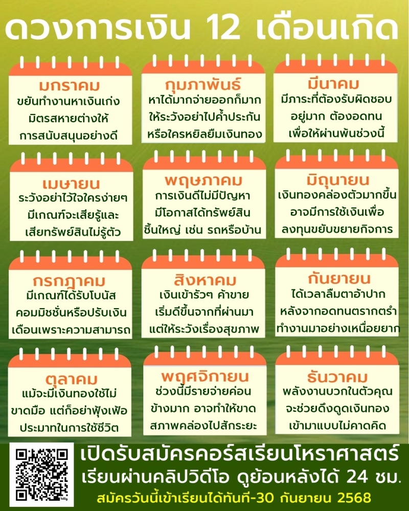 ล่าสุดทางด้านเพจเฟซบุ๊คสมาคมโหรแห่งประเทศไทย ในพระบรมราชินูปถัมภ์ได้ทำนายดวงการเงิน 2 เดือนเกิด ส่งท้ายเดือนกรกฎาคม 2568 พบคน 1 เดือนเกิด ระวังอย่าไว้ใจใครง่ายๆ มีเกณฑ์จะเสียรู้และเสียทรัพย์สินไม่รู้ตัว