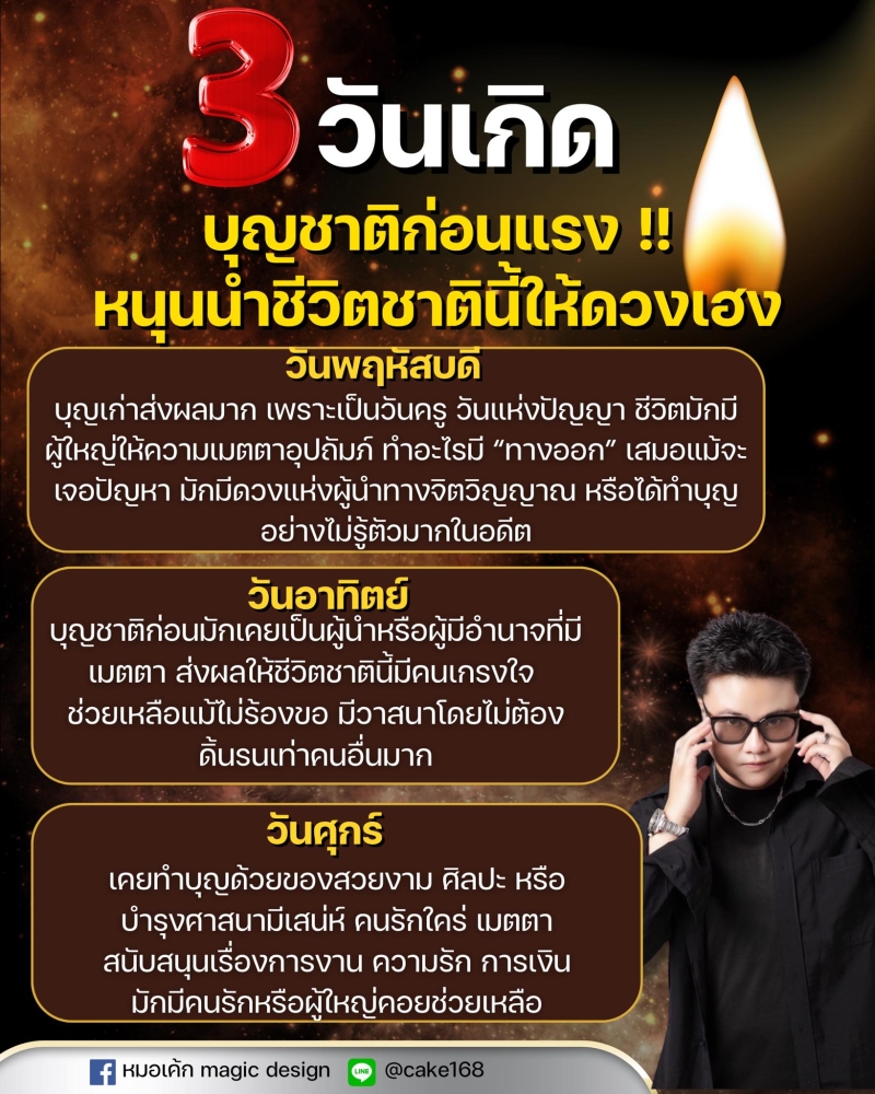 วันที่ 29 ก.ค. 68 ที่ผ่านมา ทาง หมอเค้กMagicdesign เปิด เปิดดวง 3 วันเกิดที่บุญเก่าแรง! ผู้ใหญ่รัก เมตตาไม่ขาด