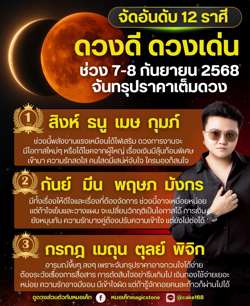วันที่ 7 ก.ย. 68 ที่ผ่านมา ทาง หมอเค้กดลบันดาล จัดอันดับดวงชะตา 12 ราศี ช่วงจันทรุปราคาเหมือนบททดสอบเล็กๆ ใครที่อยู่ในกลุ่มดวงดีให้รีบใช้โอกาส ส่วนใครที่อยู่ในกลุ่มต้องระวังก็ให้ใจเย็น จะกลายเป็นบทเรียนดีๆ ในระยะยาวครับ