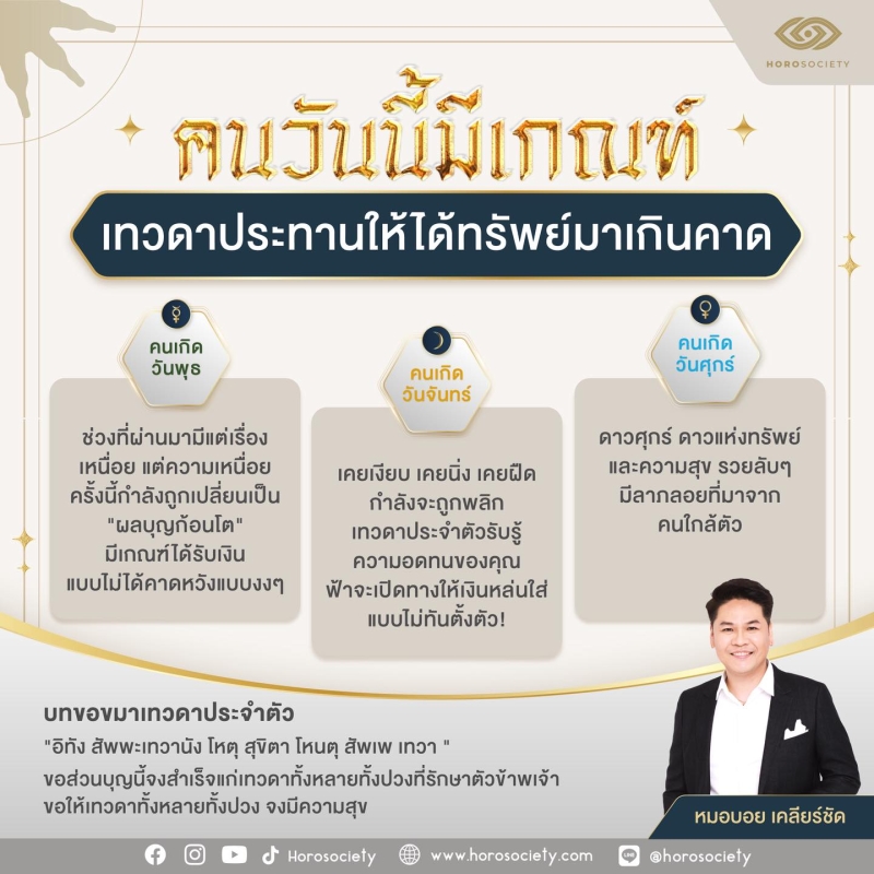 วันที่ 9 ก.ย. 68 ทาง หมอบอย เคลียร์ชัด เผย 3 วันเกิด เทวดาประทานให้ได้ทรัพย์มาเกินคาด พร้อมเผยทริคเสริมดวง ขอขมาเทวดาประจำตัว แล้วค่อยขอพร จะสมหวัง