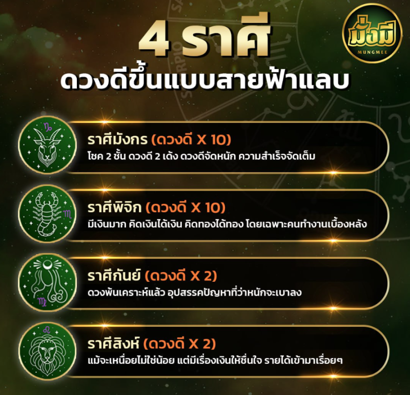 ราศีพิจิก (ดวงดี x 10) มีเงินมาก คิดเงินได้เงิน คิดทองได้ทอง โดยเฉพาะคนทำงานเบื้องหลัง